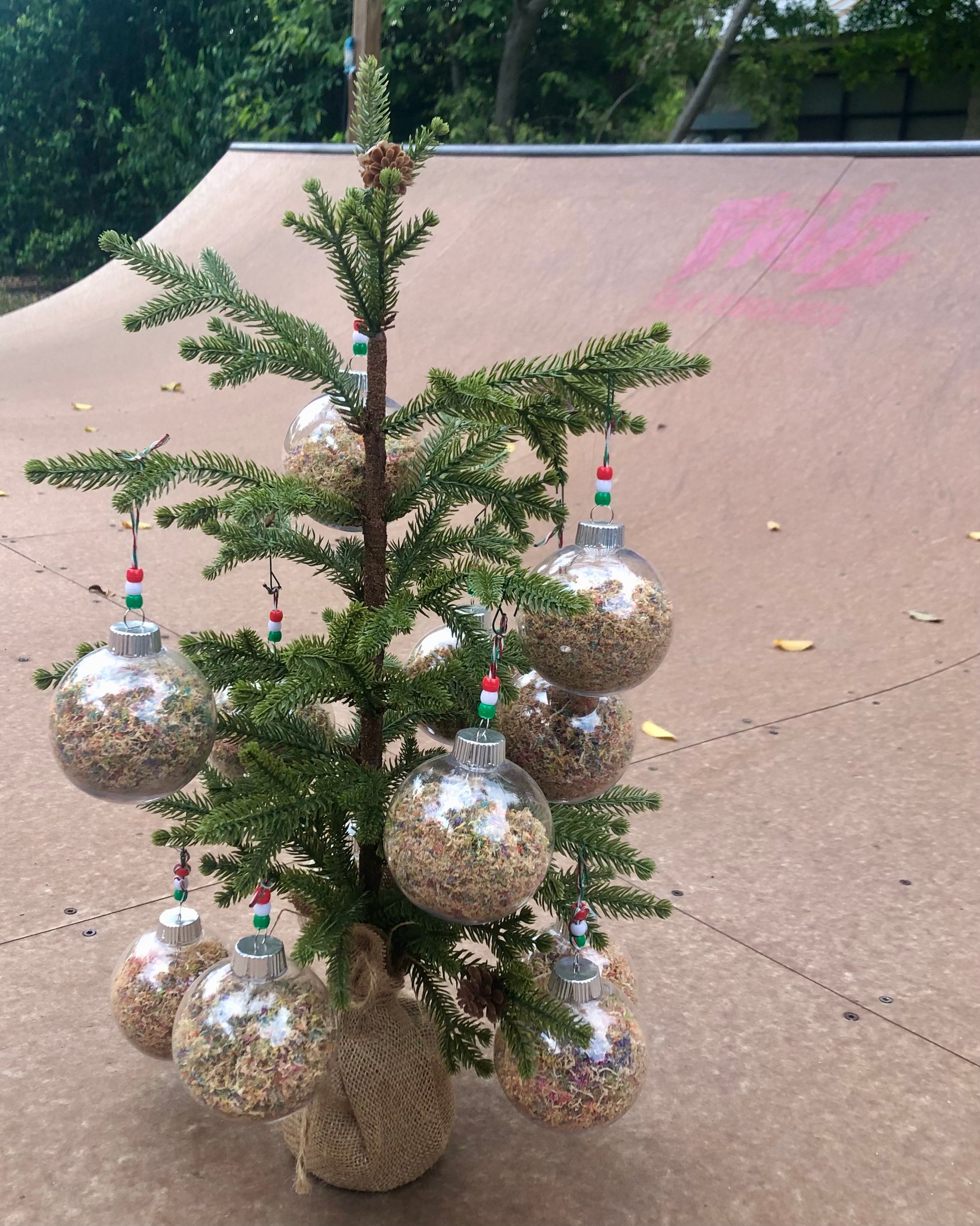 Recycled skateboard sawdust from recycled skateboard art projects.